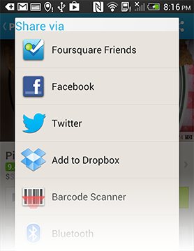 When I bought my first Android phone a year ago, many apps I use didn’t use Intents, instead limiting me to pre-determined conduits (like iOS). Over the past year much has changed, with nearly all popular apps now supporting Intents. But there are some stragglers. Pandora, for example, still limits sharing to the channels it deems appropriate.